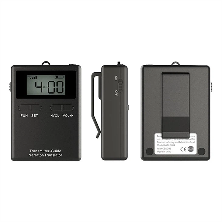 ระบบ Wireless Tour Guide มีตัวเลือกช่องสูงสุด 100 ช่อง และมีหน้าจอ LCD ดิจิตอลความละเอียดสูงสําหรับการใช้งานที่ใช้งานง่ายและมีภาพ แม้แต่เด็กสามารถใช้งานได้ง่าย นอกจากนี้ยังสนับสนุนการซิงค์รอนช่องแบบคลิกเดียว